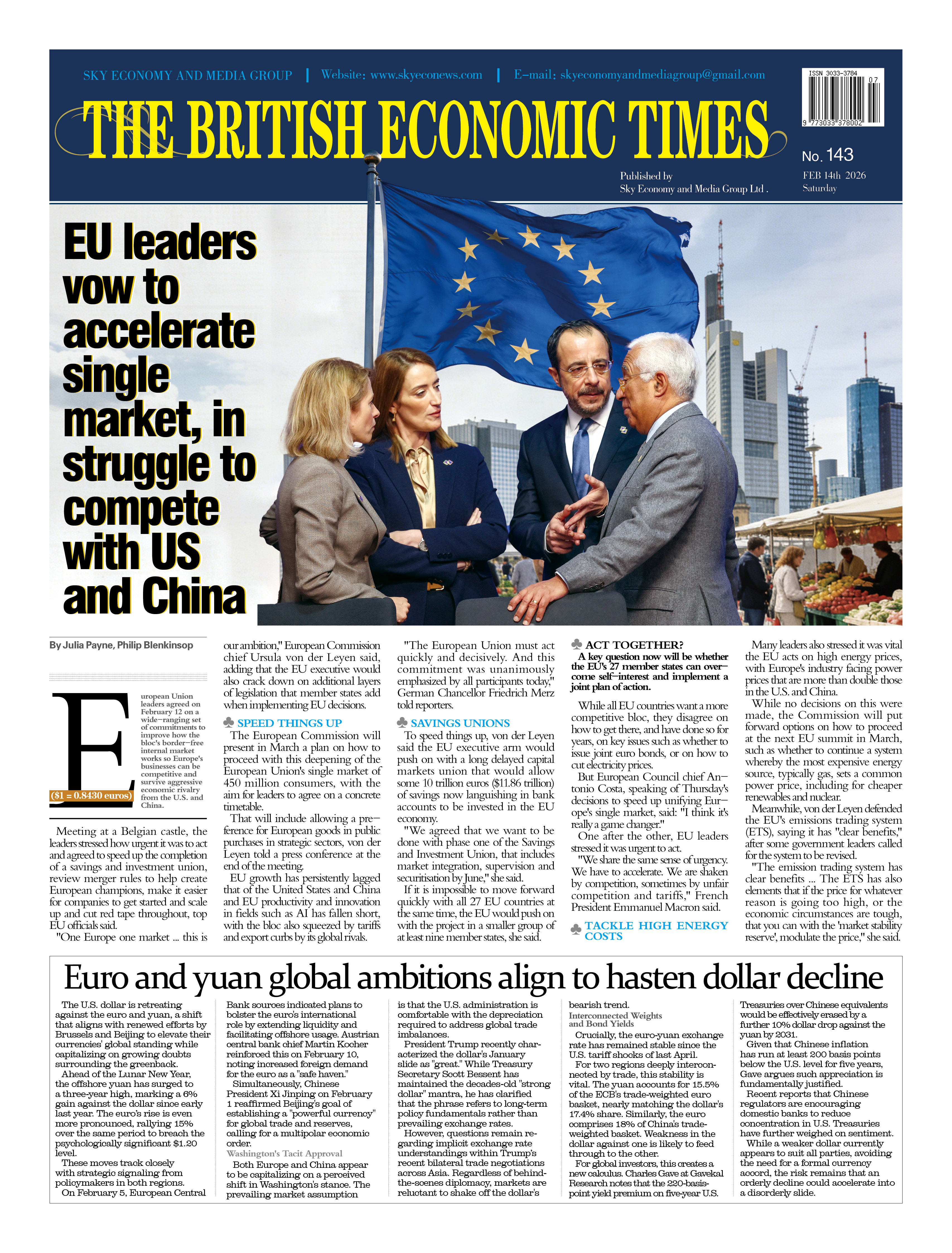 歐盟領導人誓言加速推進單一市場建設,以應對與中美競爭的挑戰