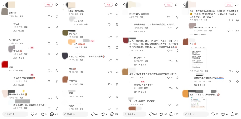 值得關注的是,近期,中國遊客放棄日本,轉而前往其他周邊國家。在社交平臺上,多個“不去日本後去哪里旅遊”的帖子下,不少網友出境遊選擇了韓國、馬來西亞、泰國、越南、柬埔寨、俄羅斯等地。