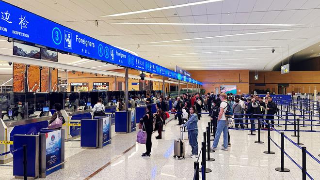 中國移民管理局相關負責人介紹,為應對口岸出入境流量快速增長,確保口岸通關安全順暢,中國移民管理局密切監測口岸即時流量,並在節假日期間發佈口岸通關“兩公佈一提示”,確保客流高峰時段及時削峰、動態削峰,進一步提升口岸通關保障能力。