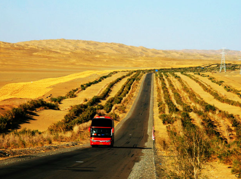 人們在公路兩側種植了數以百萬計的灌木和喬木,尤其是梭梭樹和檉柳等。這些植被不需要太多的水。