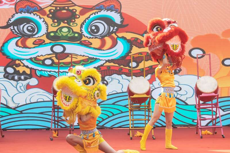 現場,活動以慶祝龍年為主題,突出龍年祥瑞的中國精神,門樓裝飾及攤位設計,西關禮餅、工藝品創作等都圍繞著龍的形象開展。非遺周啟動儀式由非遺舞龍表演開場,彩龍在鑼鼓聲中翻騰飛舞。佛山市南海區帶來醒獅舞蹈表演《祥獅鳴潮》,將傳統獅舞和鼓舞相結合,展現非遺與國潮碰撞出的新火花。此外,主辦方還安排了迎春新民樂及粵劇表演。