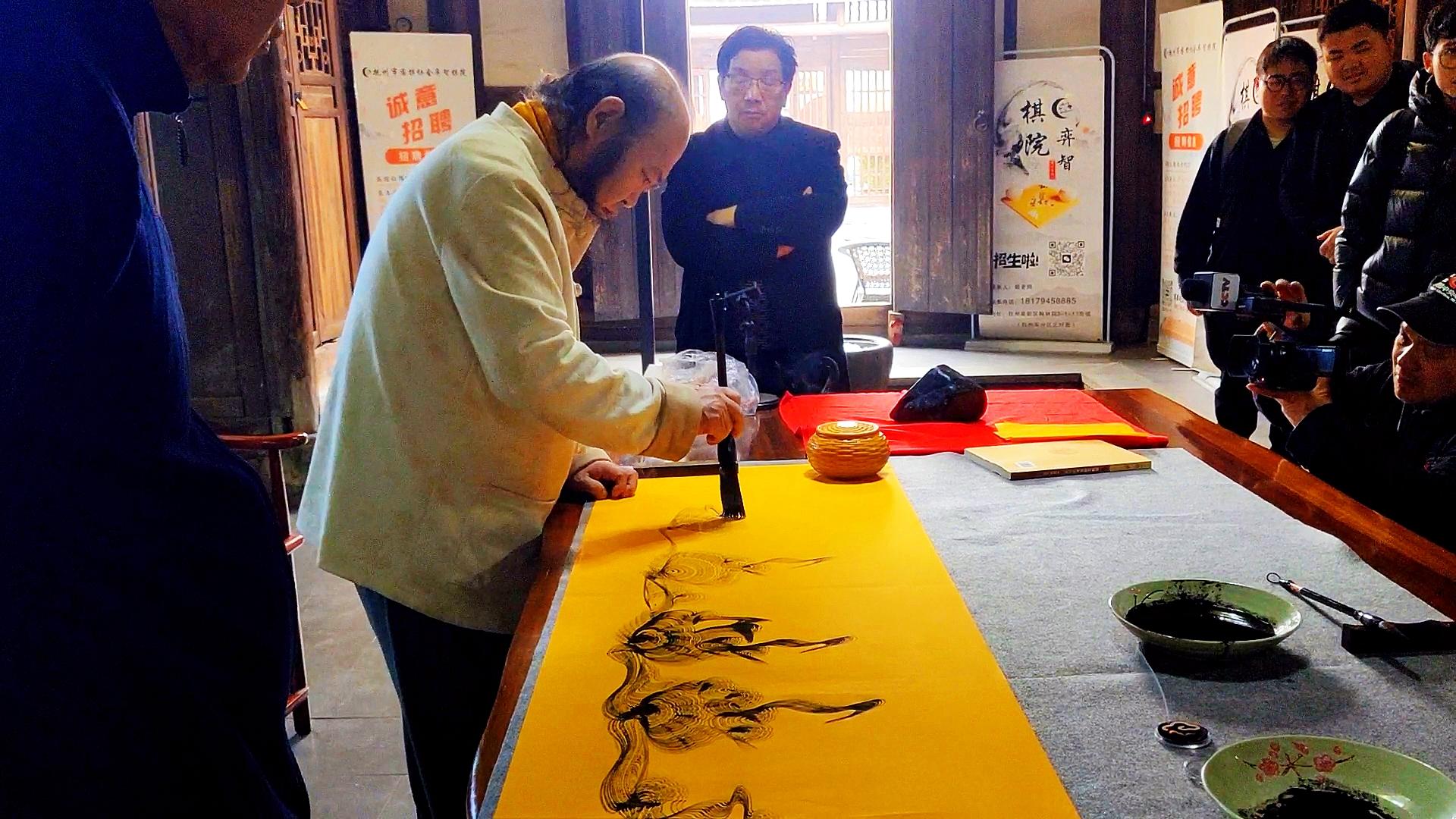 在撫期間,瓜爾道然一行考察了4A級重點景區一一文昌裏歷史文化街區、文昌書院、錦繡中華國石館、正覺寺等,瓜爾道然現場揮毫潑墨,一筆到底,一氣呵成,字畫合一,為撫州美景點贊,向撫州人民拜年,祝福撫州人民龍年鴻運,棋開得勝。
