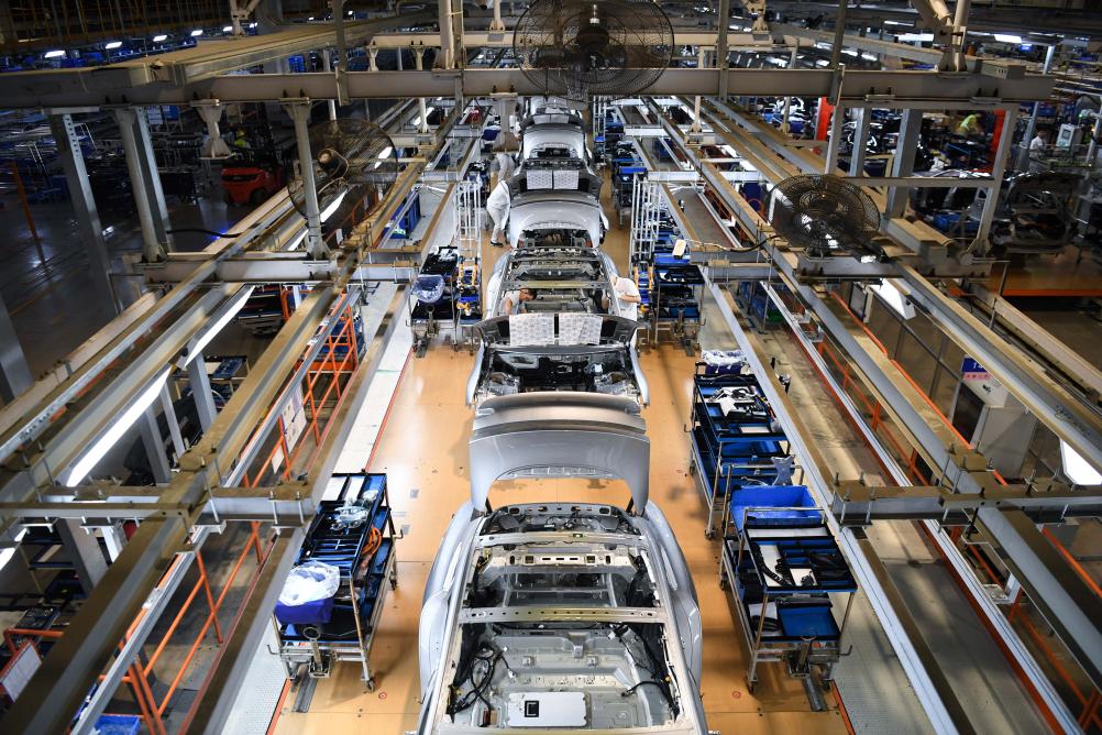 小鵬汽車智能網聯科技產業園內的總裝生產線。