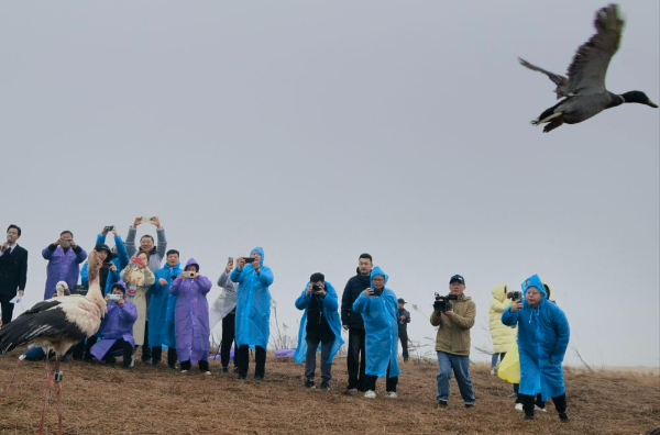 25只候鳥在江西省鄱陽縣鄱陽湖國家濕地公園集中放飛。