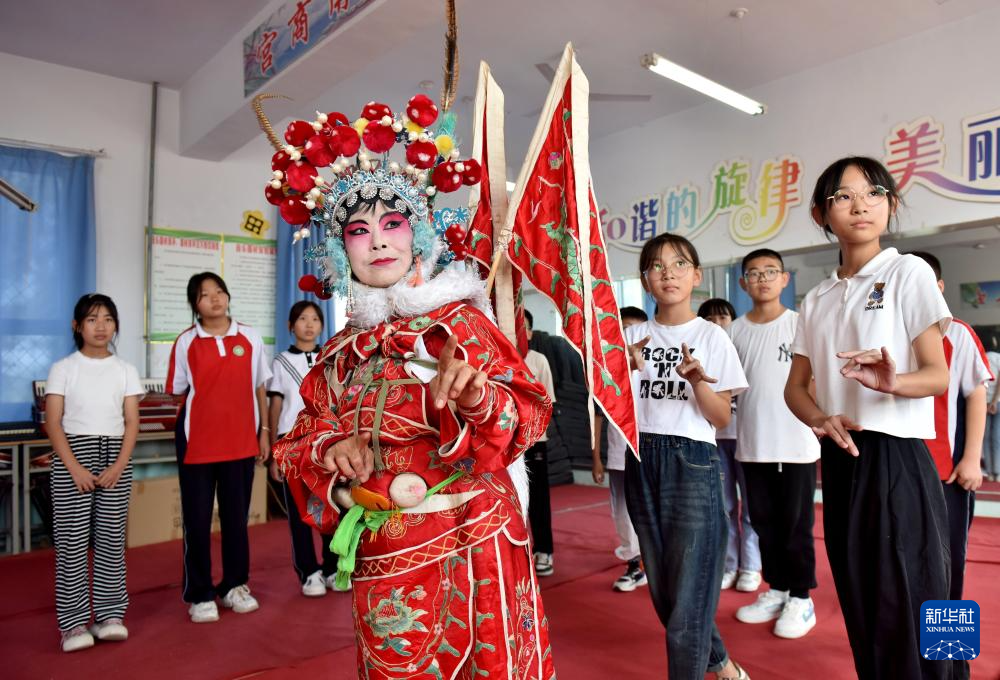 9月19日,威縣亂彈傳承人時敬華在白果樹中心小學傳授亂彈曲藝。