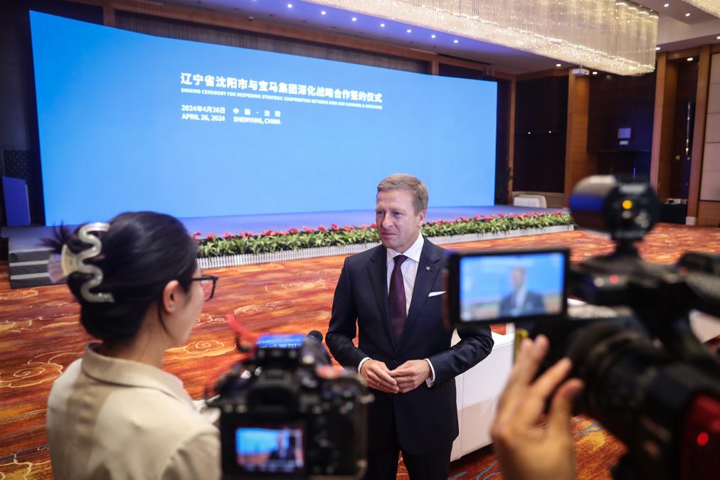 寶馬集團董事長齊普策接受採訪。