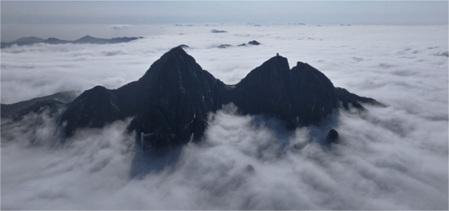 海拔1700多米的天臺山,氣溫上升後,冰雪開始消融,雲海在遠方的山谷間洶湧流動,一座座山峰直插雲霄,天地渾然成一色,宛如一幅山水畫卷。“山峰在雲海裏若隱若現,如夢似幻,美如仙境,視覺衝擊力非常強,讓人非常震撼。”來自廣東深圳的遊客楊志說,浩瀚雲海景觀美得“冒泡”,一路上拍了很多美美的照片。