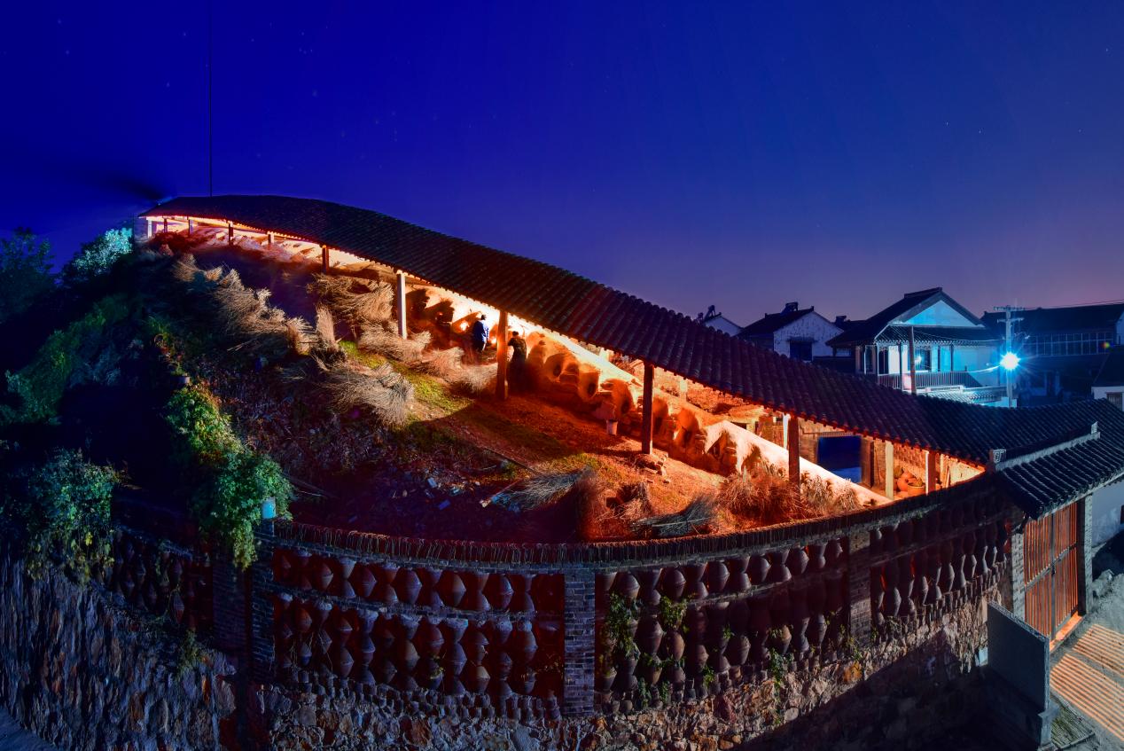 除了對龍窯進行日常養護外,對其所處物質空間的保護也向周邊延伸。記者看到,龍窯對面建設了700多平方米的展示館,陶藝產品琳琅滿目;以龍窯為核心,周邊房屋延續了白牆黑瓦的江南建築風貌;沿河景觀小品及夜間燈光帶,也融入龍窯元素……