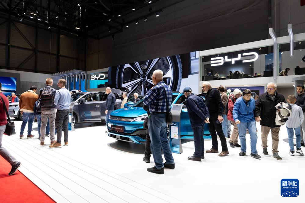 日內瓦國際車展上拍攝的比亞迪展臺。