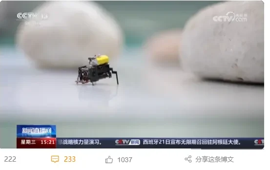 本網綜合報導 據中國央視新聞報導,北京航空航太大學科研團隊歷時 15 年,自主研發了微尺寸仿生機器人 ——“昆蟲”機器人。