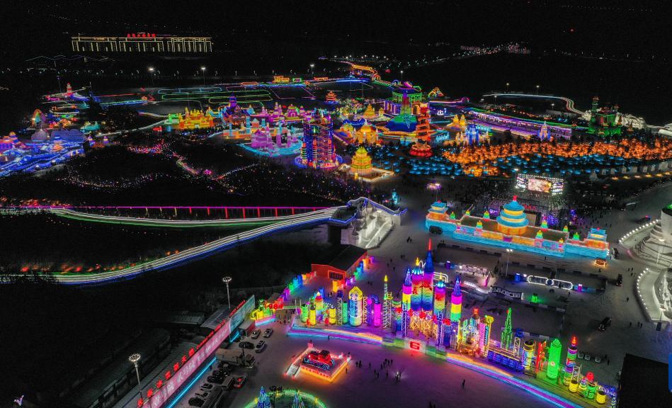 當晚,第六屆長春冰雪新天地正式向中外遊客亮相。長春冰雪新天地總經理任鵬介紹,今年156萬平方米的園區用冰量、用雪量再創新高,經過數千名工人近20天的晝夜施工,如期與遊客見面。園區新增冰雪演藝、冰雪旅拍、冰雪美食等綜合服務場景,打造城市核心冰雪IP。