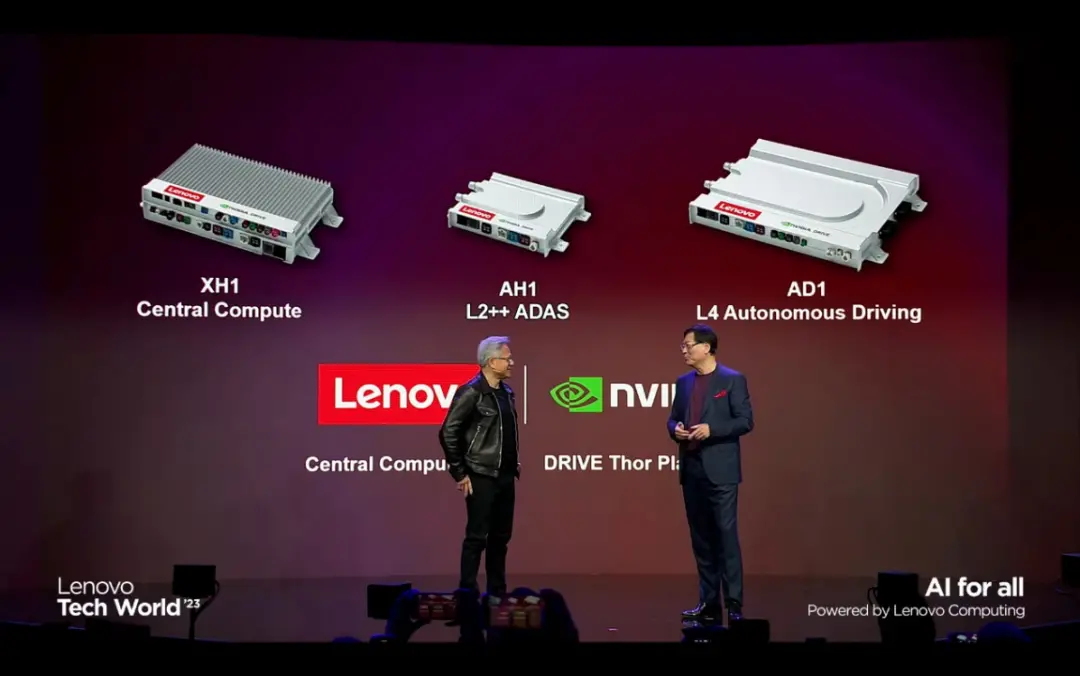 英偉達創始人、首席執行官黃仁勳也出現在大會上,為聯想域控制器新品月臺。