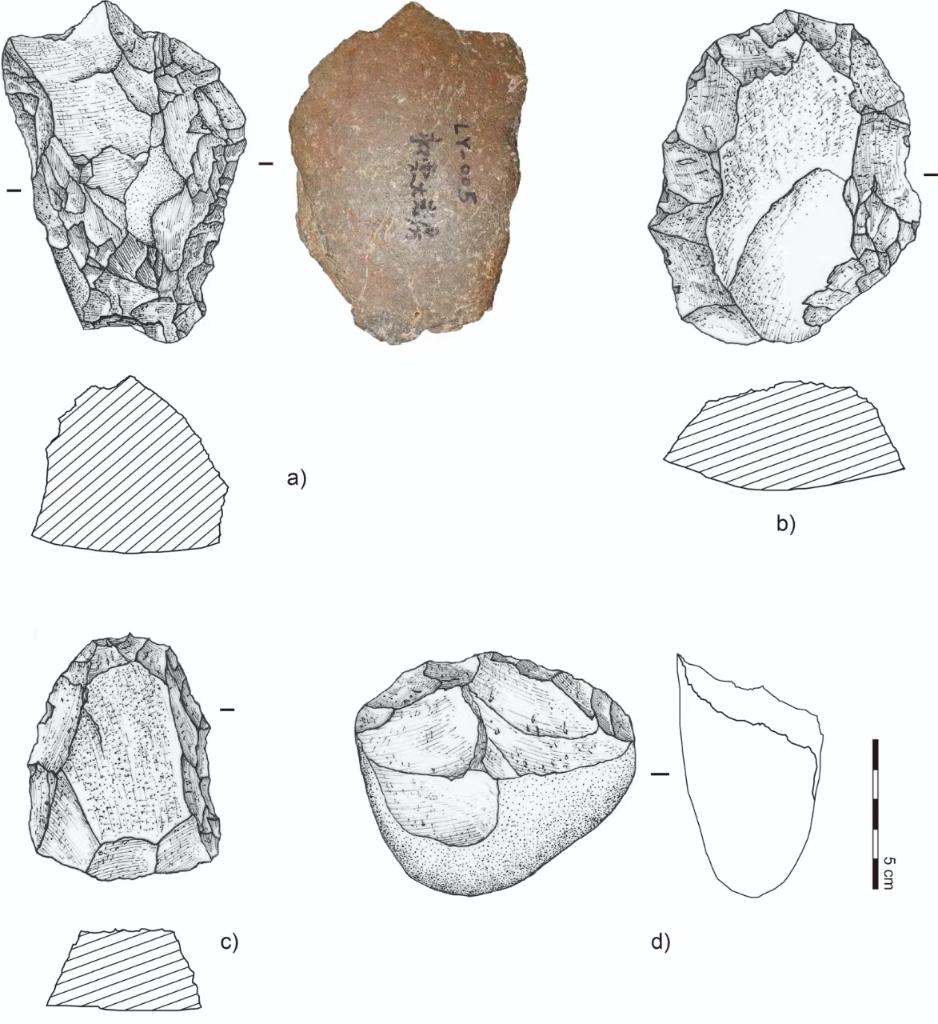 雲南省臨滄市永德縣大岩房舊石器遺址和平文化石製品組合。