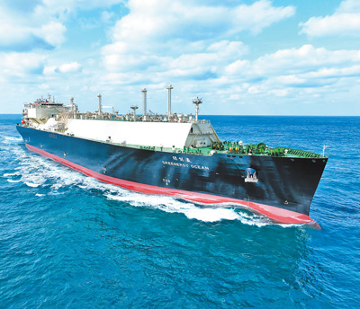 “綠能瀛”號總長299米,型寬46.4米,型深26.25米,可裝載17.4萬立方米液化天然氣,能夠滿足700萬個家庭一個月的用氣需求。它具有四大技術特點:快速性能好、綜合能耗低,低溫性能好、艙型相容廣,空船重量輕、載貨能力強,操控運維巧、航線匹配佳。