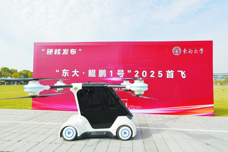 1月1日,東南大學發佈了由其科研團隊自主研發的中國首輛分佈式電驅動飛行汽車——“東大·鯤鵬1號”。該飛行汽車是中國首輛全輪轉向全輪驅動、四軸八槳構型飛行汽車,也是江蘇省首輛陸空一體飛行汽車。