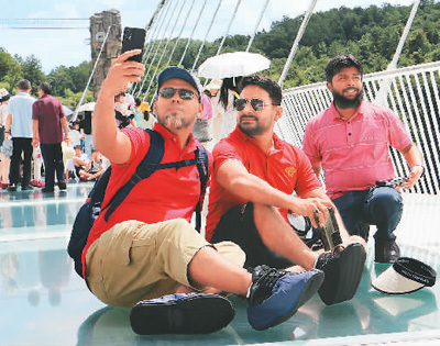 玻璃橋也吸引了許多外國遊客。張家界大峽谷景區相關負責人介紹,進入暑期,入境遊持續升溫,張家界成為越來越多外國遊客中國行的熱門目的地。7月,張家界大峽谷景區接待了來自法國、義大利、泰國、馬來西亞、韓國等40多個國家的外國遊客超過8萬人次。