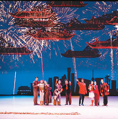 舞臺上,紅彤彤的燈籠、喜慶的春聯、熱鬧的廟會奏響了中國農曆新年的序曲;“團團”和“圓圓”家的年夜飯彰顯了中國禮儀之邦的待客之道、尊老愛幼的傳統美德,一張全家福更傳達了中國人對親情的重視和對團圓的嚮往;“胡桃夾子”大戰“年”獸,則充滿童趣地演繹了“過年”的傳說;而當寓意吉祥的仙鶴在蒼勁的松樹下迎著朝陽翩翩起舞,西方芭蕾藝術在中國文化意象中煥發出了美妙的東方神韻;扇子舞、絲綢舞、風箏舞、陀螺舞……一個個頗具中國元素的慶典場面讓阿聯酋觀眾遊歷在瑰麗多姿的中國傳統文化中。