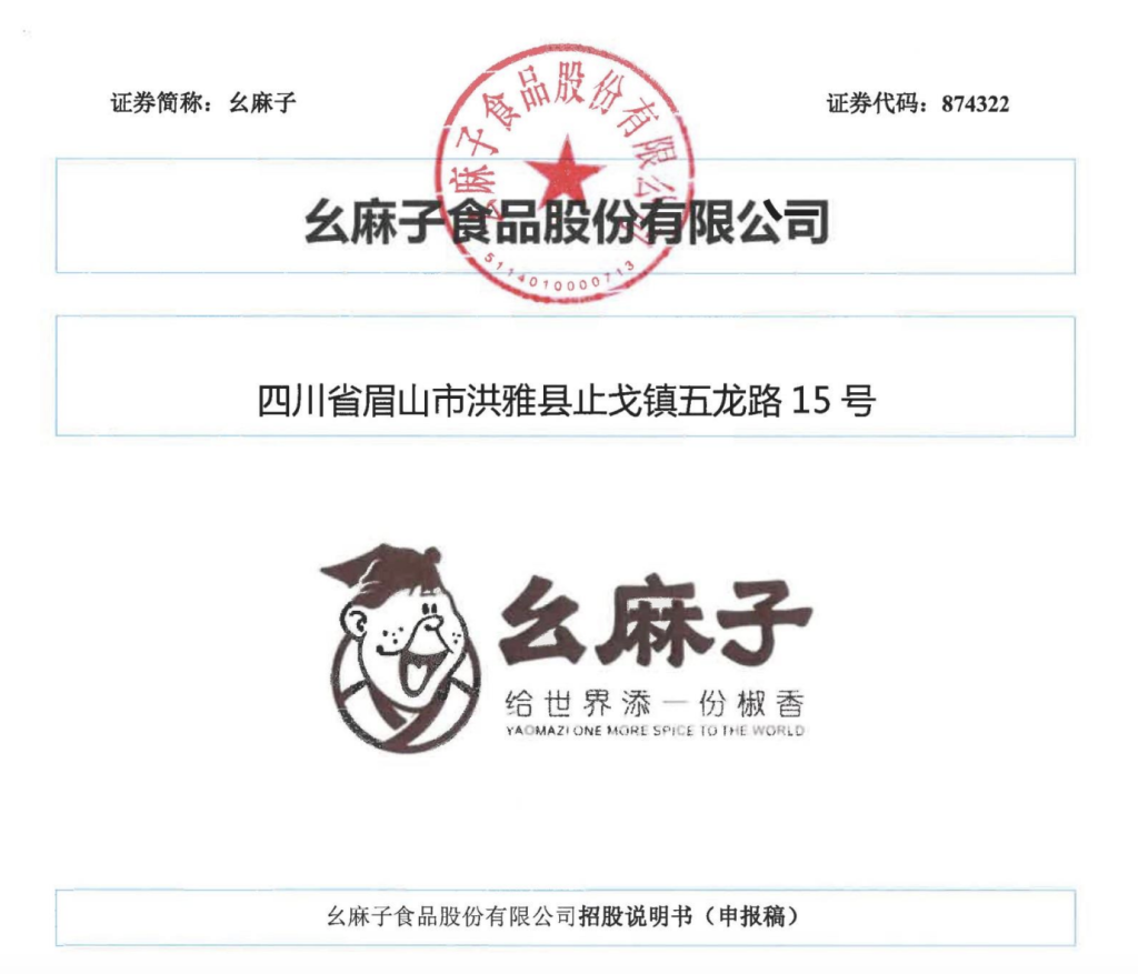 么麻子總部位於四川洪雅。招股說明書顯示,其自設立以來一直從事麻系味型特色調味食品的研發、生產和銷售,已經初步形成了以藤椒調味油為主導,以椒麻味型複合調味料和地方特產食品為特色的產品矩陣。