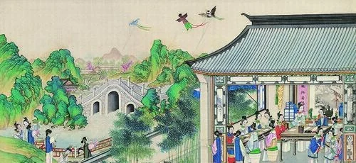 “江煙白,江波碧,柳戶清明,燕簾寒食”,燕簾節俗也與介子推的傳說相關,孟元老的《東京夢華錄》卷7《清明節》記此日宋朝人“用面造棗飛燕,柳條串之,插於門楣,謂之‘子推燕’”。畫卵節俗起於何時已不可考,但在隋唐之際就已頗為流行。據隋人杜臺卿的《玉燭寶典》記載,當時就流行把鴨蛋染成“藍茜雜色,仍加雕鏤”作為寒食節見面時“遞相餉遺”的禮物。元代雖廢除了寒食禁火之俗,但寒食之名猶存,節日裏的祭祖塋、插柳枝、鬥雞、蕩秋千等風俗,與清明節儀式渾不可分矣。元熊夢祥《析津志輯佚·風俗》記載,元代的“清明、寒食,宮廷於是節最為富麗,起立彩索秋千架,自有戲蹴、秋千之服”。