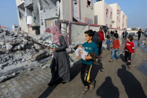 以色列的轟炸使該領土大部分地區變成廢墟,造成近22000名巴勒斯坦人死亡,230萬居民陷入人道主義災難。以色列官員說,進攻還有好幾個月的時間。