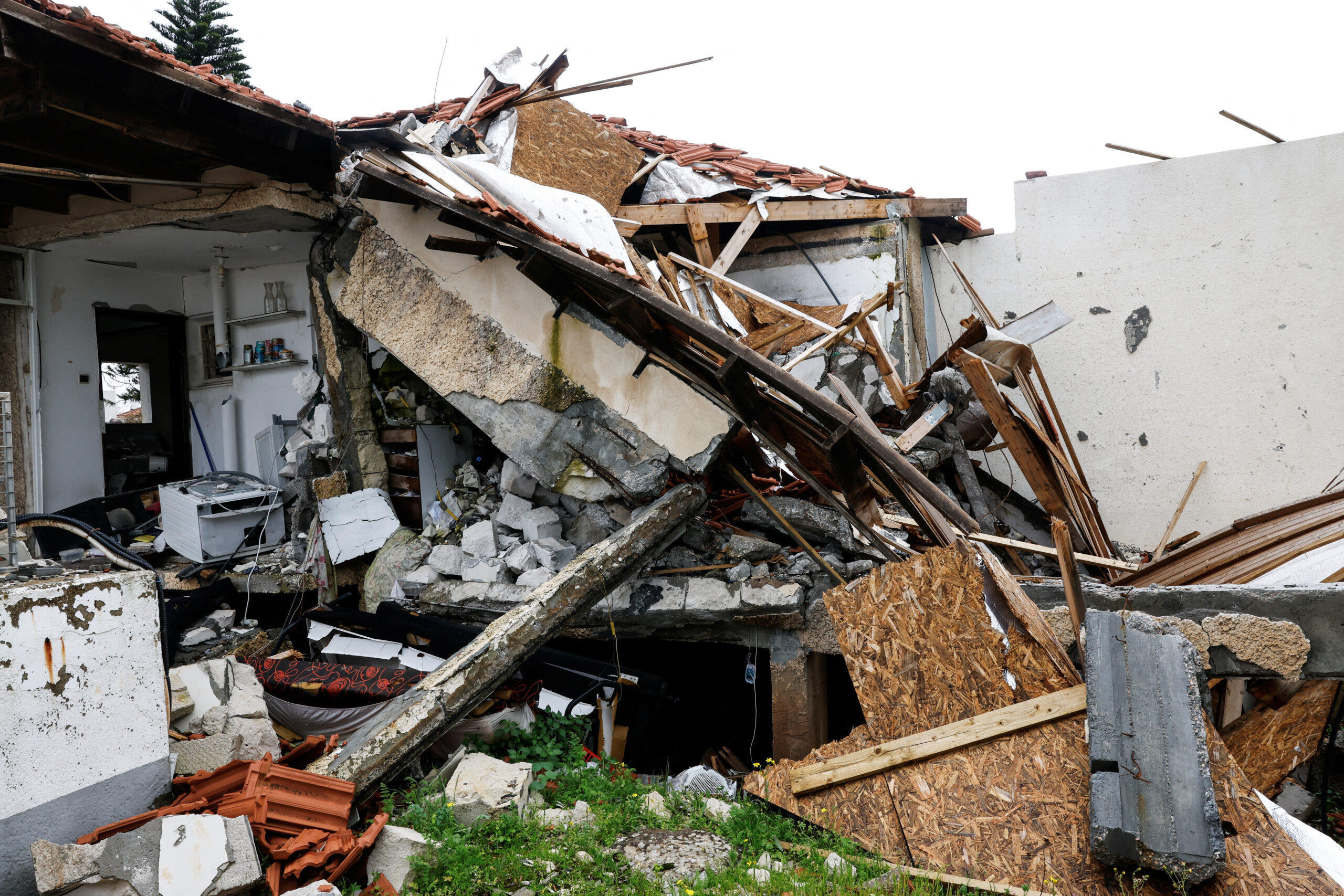 The exterior of a house damaged, according to Israeli authorities, by a rocket fired by Hezbollah in Lebanon, amid ongoing cross-border hostilities between Hezbollah and Israeli forces, is seen near Israel’s border with Lebanon in northern Israel March 19, 2024. REUTERS/Carlos Garcia Rawlins