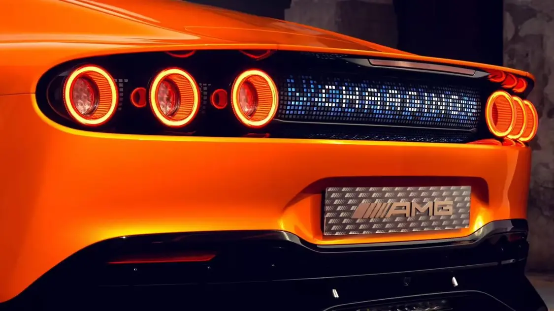 車尾造型相對簡潔且肌肉感十足,配有主動空氣刹車、碳纖維擴散器和六個圓形LED尾燈。更具未來感的是MBUX Fluid Light Panel,其內含700餘顆可編程RGB燈珠,支持文字與動畫形式與外界互動。