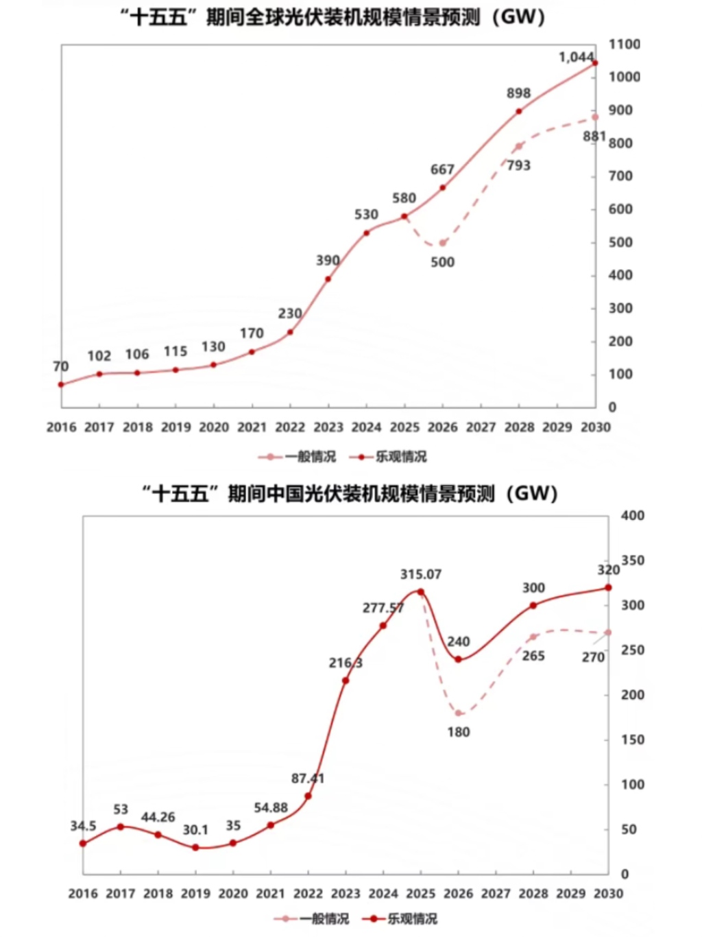 澎湃新聞注意到,即便在最樂觀的預測中,今年中國光伏新增裝機量都將較2025年顯著下滑。去年國內新增裝機達315.07GW,將成為未來五年難以企及的高點。
