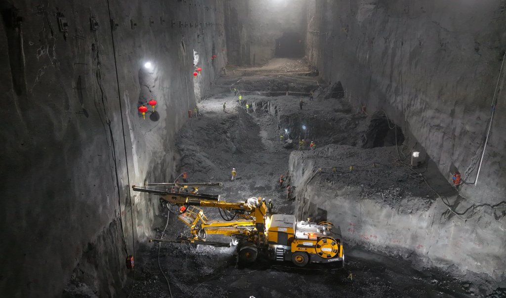 據國投集團雅礱江公司介紹,春節期間,超500名建設者堅守一線,搶抓枯水期施工“黃金窗口”,實行24小時輪班作業,投入使用首臺國產智能無人鑿岩臺車,助力電站廠房提前3個月開挖完成。