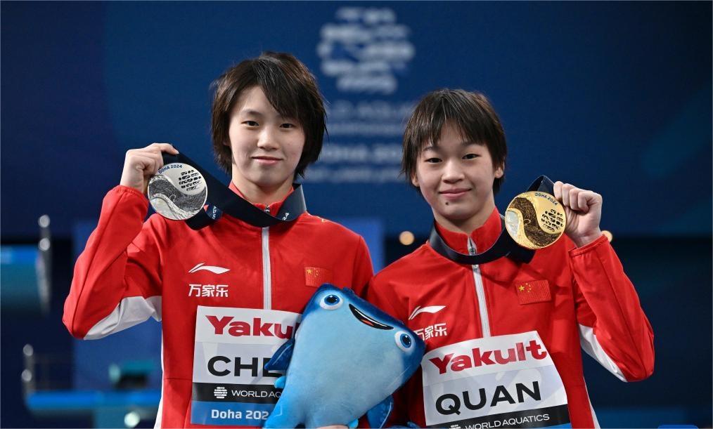 2024多哈游泳世錦賽跳水女子10米臺決賽於北京時間6日淩晨結束。中國運動員全紅嬋以436.25分獲得金牌,首奪該项目世錦賽冠軍。其中在難度動作207C上,她得到接近滿分的97.35分,由此拉開了分差。名列第二的陳芋汐得到427.80分,遺憾錯失四連冠。這對“姐妹花”再次實現了對大賽金銀牌的包攬。