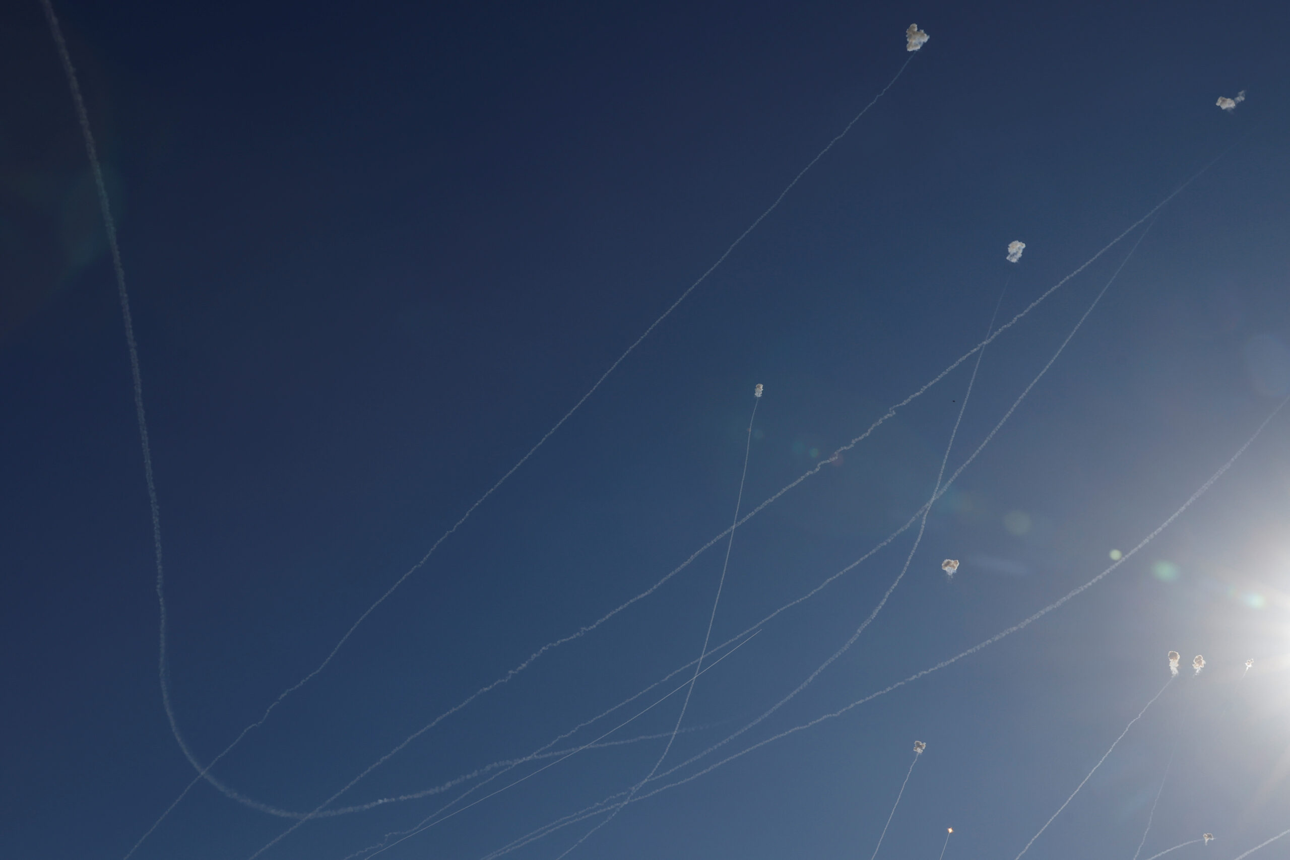 Israel’s Iron Dome anti-missile system intercepts rockets launched from the Gaza Strip, amid the ongoing conflict between Israel and the Palestinian Islamist group Hamas, in southern Israel, January 16, 2024. REUTERS/Tyrone Siu