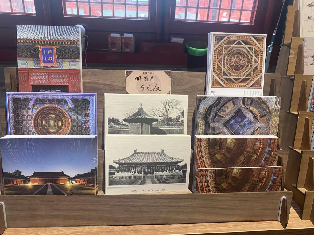 乾隆時期增建的西洋門、記述乾隆皇帝為母親祝壽慶典擴建萬壽寺的乾隆禦碑亭、光緒時期山門殿頂彩繪的《青天流雲百蝠圖》……在“萬壽郵局”,這些文物中的文化元素得到充分提取,融入書簽、明信片、滑鼠墊、冰箱貼等文創產品的設計中。
