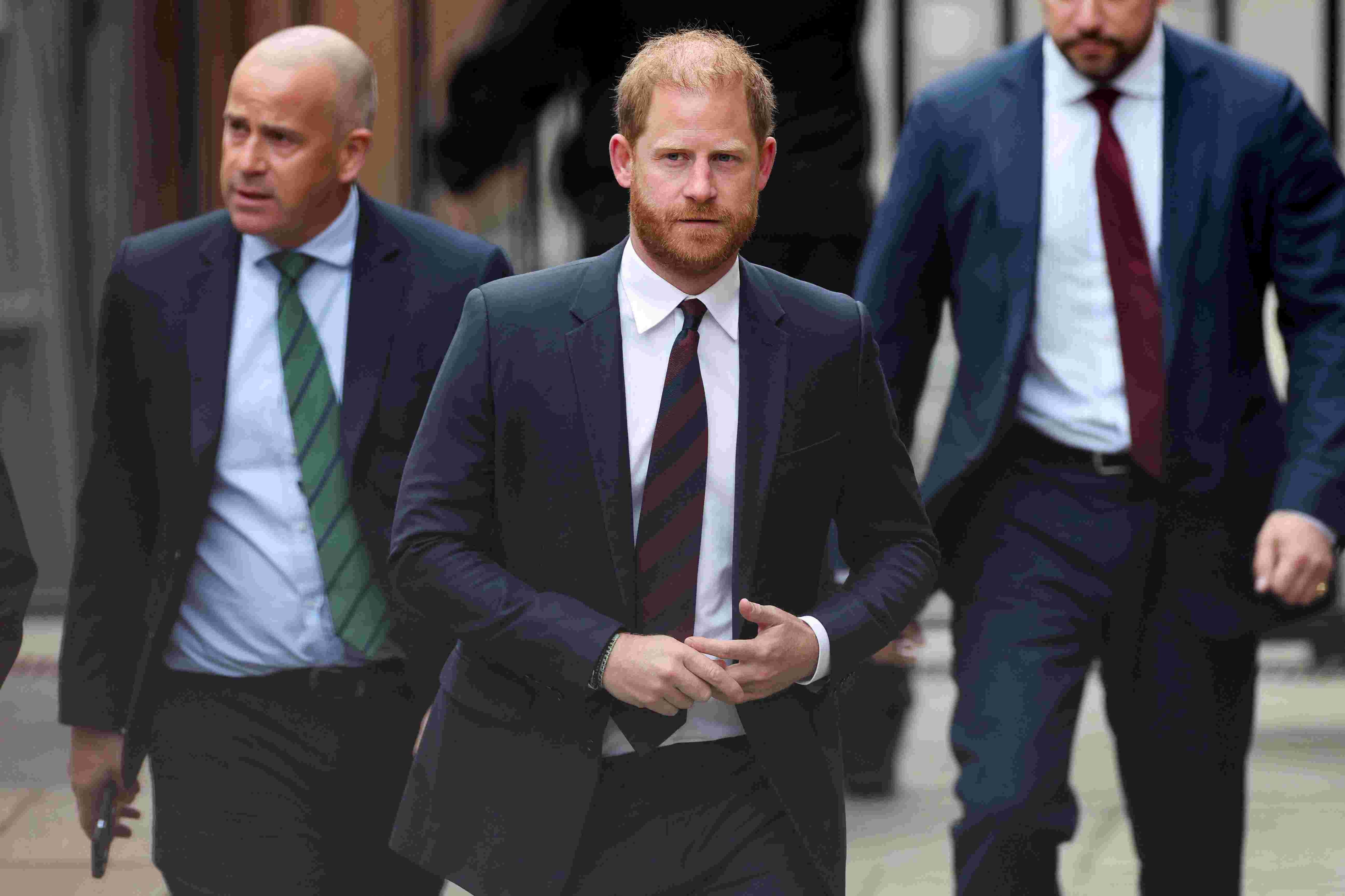 哈裏,40歲,在兩天的聽證會最後一天,他定期與他的法律團隊協商,有時搖頭,因為政府的律師認為採取“定制”方法來處理他的安全是正確的決定。