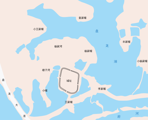 盤龍城遺址位於湖北武漢東北郊黃陂區境內的盤龍湖畔。從現在的地貌上看來,會發現盤龍城似乎是一座海上孤城。很明顯的,當時的地貌與今日不同。在商代,盤龍城四周的土地應該都是相連的。而整個盤龍城遺址的地勢,也是東北高而西南低,並且在東北角的位置也有宮殿建築聚集。不過,整個盤龍城的規模要較鄭州商城小的許多,大約只有鄭州商城的1/25。