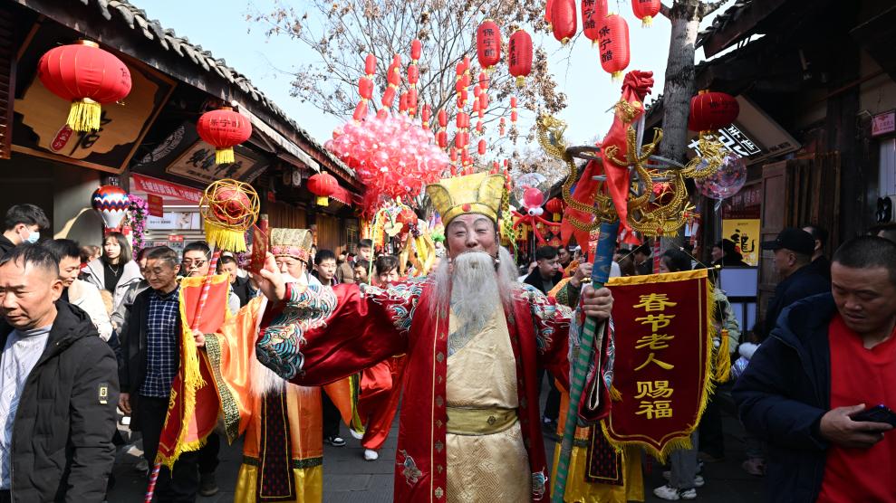 閬中古城大年初一舉辦的“春節老人賜福”活動。