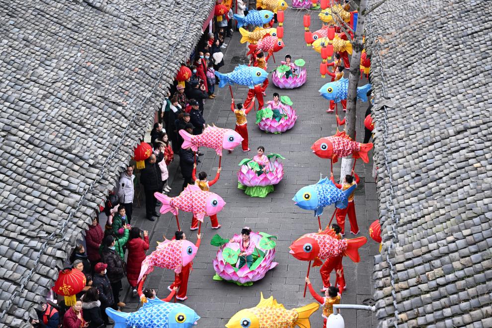 入夜,錦屏山上的春節文化主題公園亮起了燈。這裏正在舉辦一年一度的迎春燈會,人們登高賞燈、慶賀新春,在歡聚遊歷中迎來新的一年。