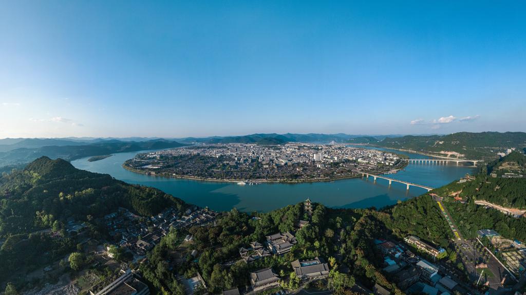 賞民俗、遊古城後,再登臨古城中心的中天樓,望遠懷古。沿著中天樓這一軸心,古城街巷樓宇向四面八方次第展開。嘉陵江自城西北流來,由東北方向流出,閬中城便處在這一片山水環抱之中。江上帆船點點,遠處錦屏山蜿蜒起伏,宛若一幅水墨丹青畫。