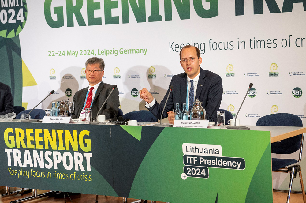 ITF秘書長金永泰(Young Tae Kim)與立陶宛交通與通訊部部長馬里烏斯·斯庫迪斯(Marius Skuodis)召開第十六屆國際交通論壇(ITF)新聞發佈會。