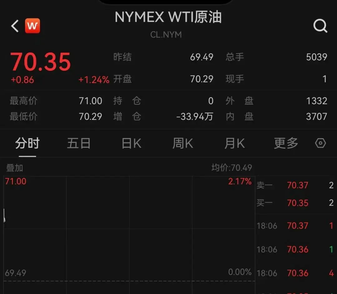 11月4日早上,國際原油大幅高開。WTI原油一度漲超2%。