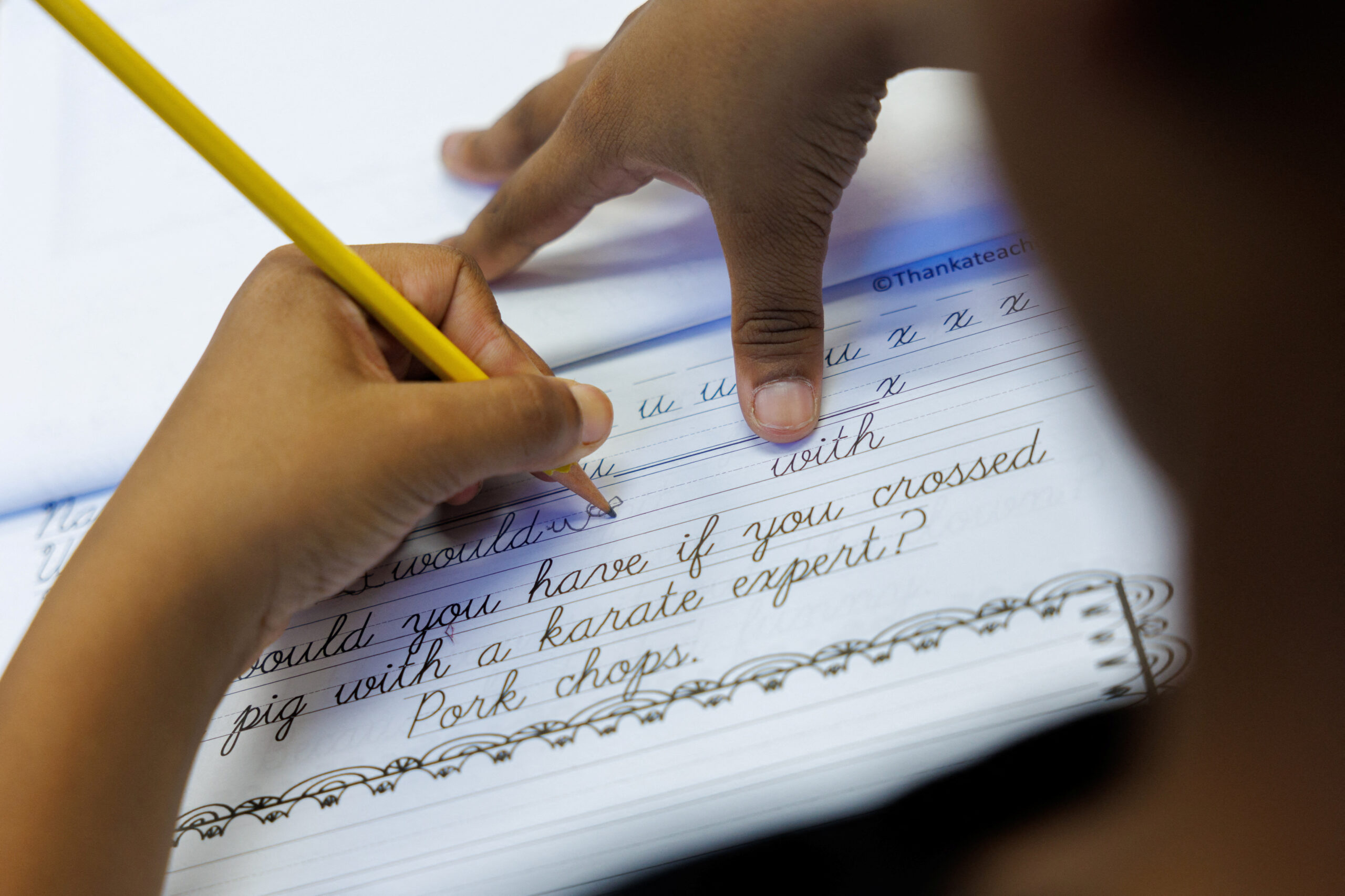 “他們根本不教孩子怎麼寫字母。師範學院不准備教師來教授書法。”促進書法教學的非營利組織“書法集體”的創始人凱瑟琳·賴特說。