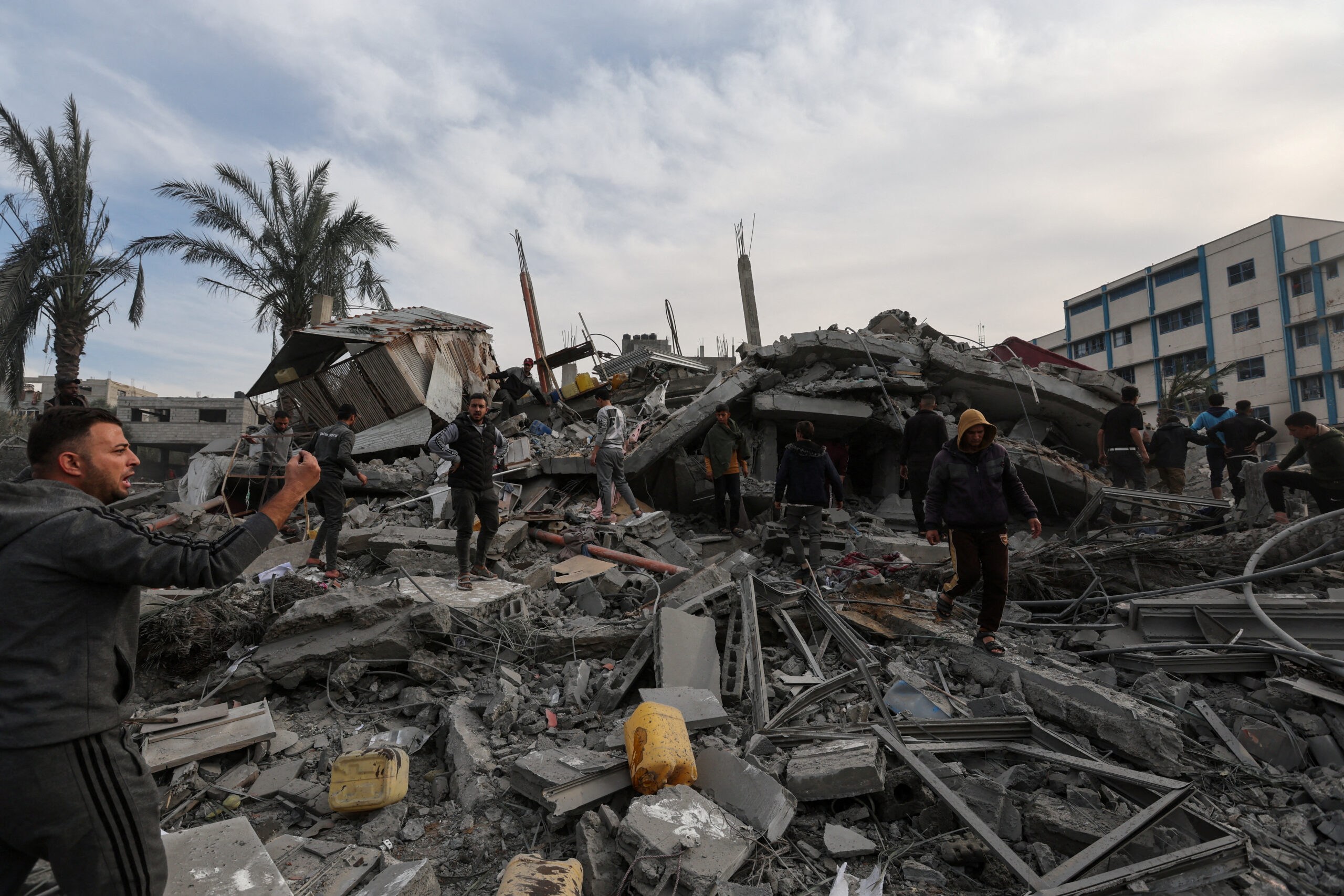 Palestinians search for casualties at the site of an Israeli strike on a house, amid the ongoing conflict between Israel and the Palestinian Islamist group Hamas, in Rafah, in the southern Gaza Strip, December 20, 2023. REUTERS/Ibraheem Abu Mustafa