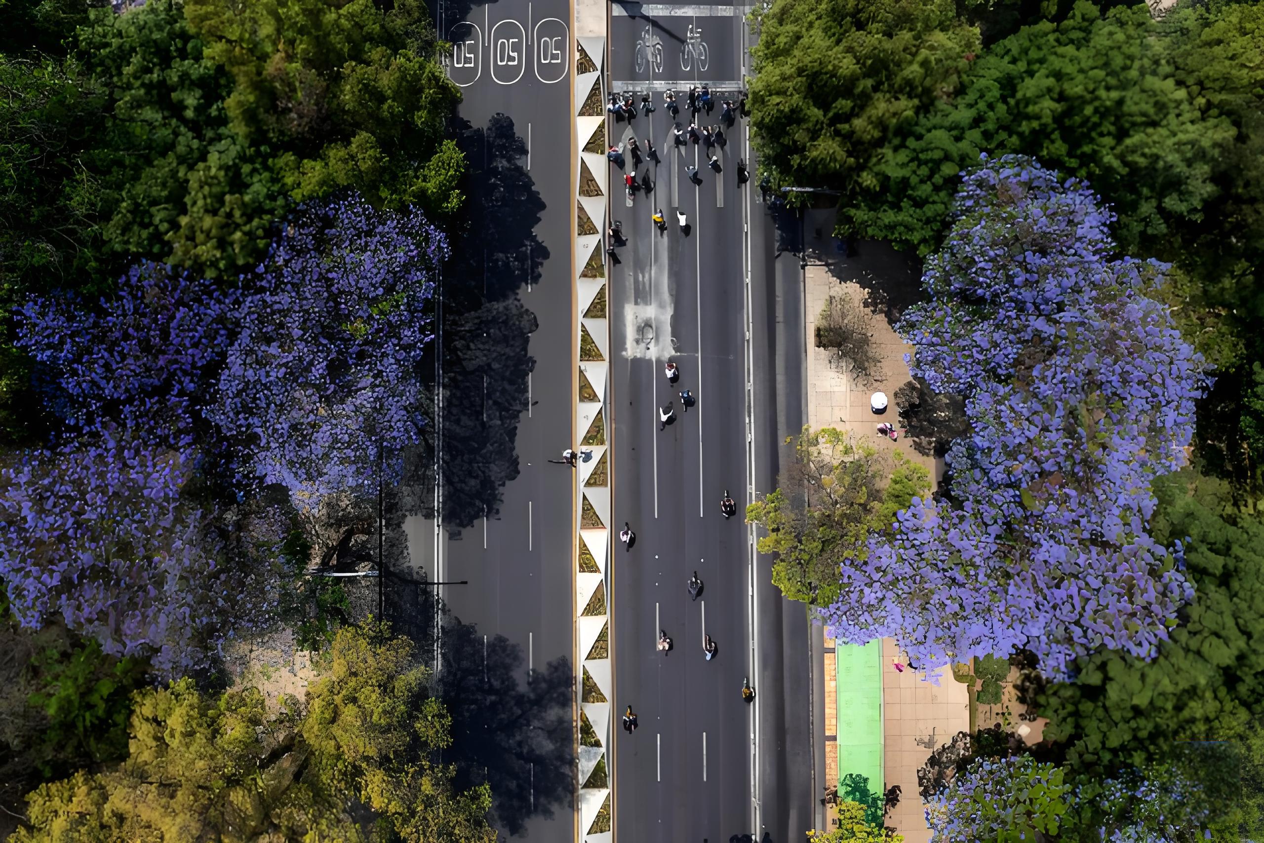 墨西哥城的藍花楹是春天最具代表性的景觀之一。每年3月至4月,這種紫藍色花朵將城市街道、公園和廣場點綴得如詩如畫。