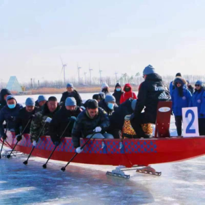 冰上龍舟賽也成了各地推出的特色活動。在黑龍江呼瑪縣,200多名參賽選手組成17支隊伍,在冰天雪地中上演“速度與激情”。冰上龍舟是傳統龍舟的創新和延伸。選手們用龍舟撐推動龍舟在冰上滑行,更具挑戰性和娛樂性。在遼寧錦州,第七屆海洋冰雪節暨全民冰雪運動季冰上龍舟超級聯賽將於1月15日至16日開賽。