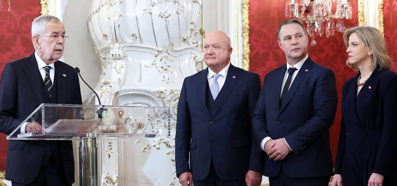 当地时间3日,奥地利新政府成员宣誓就职,奥地利联邦总统范德贝伦主持宣誓就职仪式。