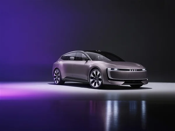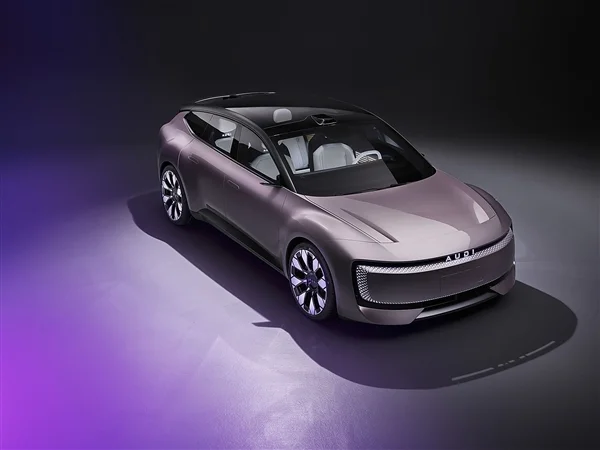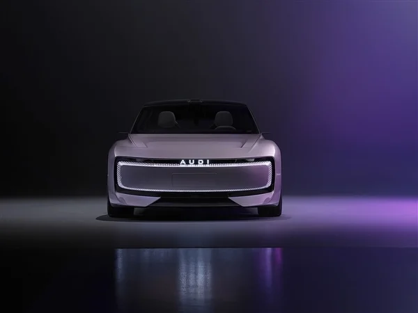 概念車定位為純電動Sportback,採用新能源車常見的封閉式格柵,貫穿式的環狀燈帶造型時尚前衛,還配有車頂鐳射雷達,但遺憾的是,新品牌無法使用奧迪的四環Logo,而是專為了可發光的“AUDI”英文字母。
