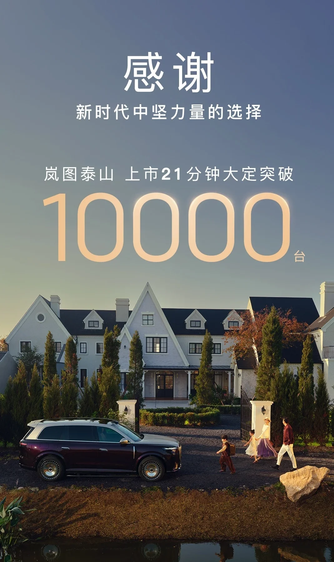 嵐圖汽車官方宣佈:嵐圖泰山旗艦 SUV 上市 21 分鐘大定突破 1 萬臺。