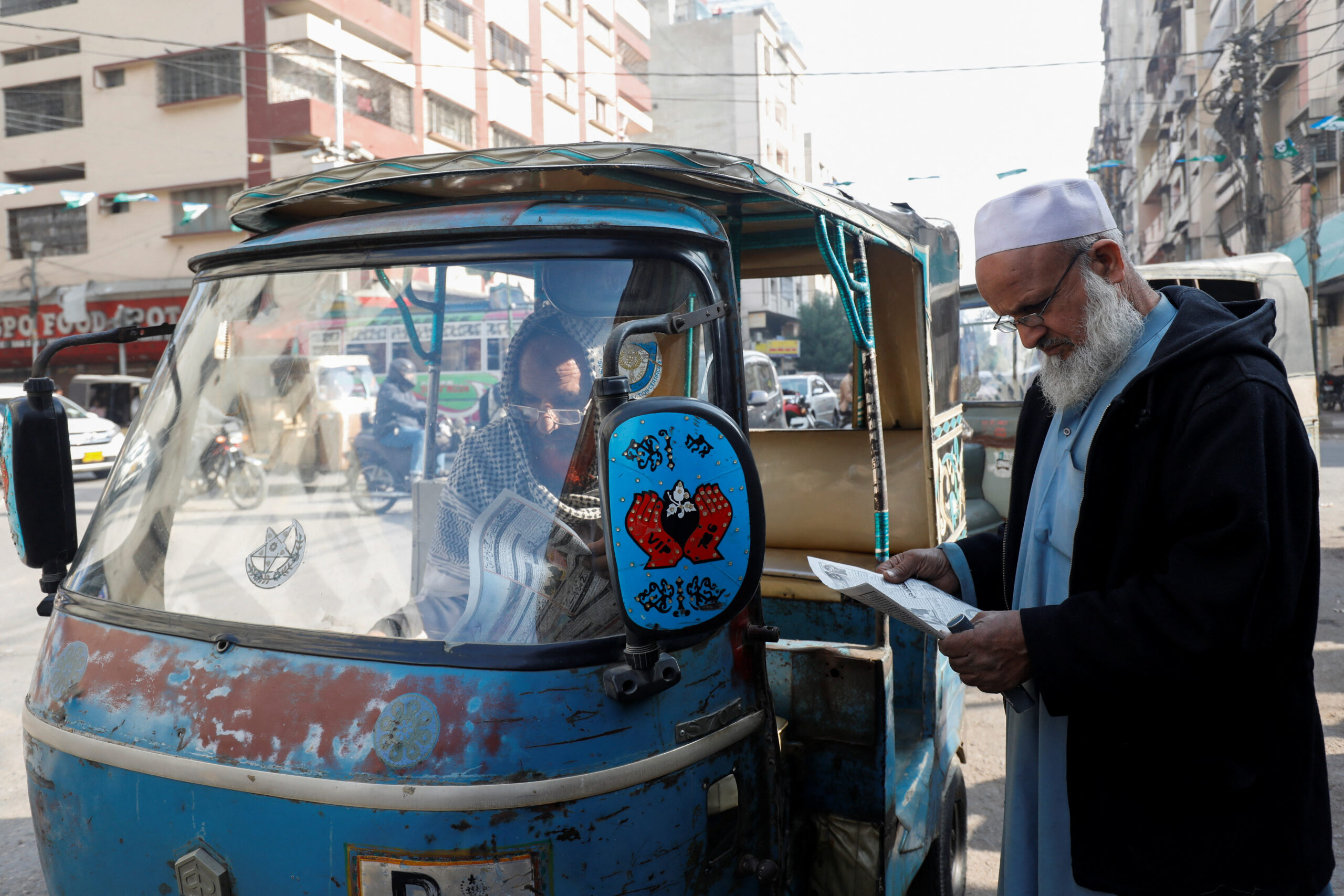 A man looks at a television screen after the Pakistani foreign ministry said the country conducted strikes inside Iran targeting separatist militants, two days after Tehran said it attacked Israel-linked militant bases inside Pakistani territory, in Karachi, Pakistan January 18, 2024. REUTERS/Akhtar Soomro