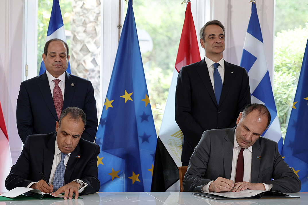 埃及總統阿蔔杜勒·法塔赫·塞西和希臘總理基裏亞科斯·米佐塔基斯在一份聯合聲明中說:”我們的雙邊合作建立在政治、經濟和文化紐帶的基礎上,這種紐帶深深植根於歷史,並由我們對和平價值觀和充分尊重國際法的堅定承諾所界定。”