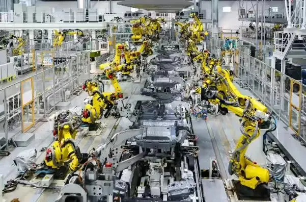 塗裝車間採用定量機和噴槍系統實現100%全車自動塗膠,結合視覺定位系統,打膠精度達到0.5mm;總裝車間整體自動化率達到國內汽車行業水準近3倍,導入零件自動配送AGV及直供輸送線,實現物流效率提升25%。