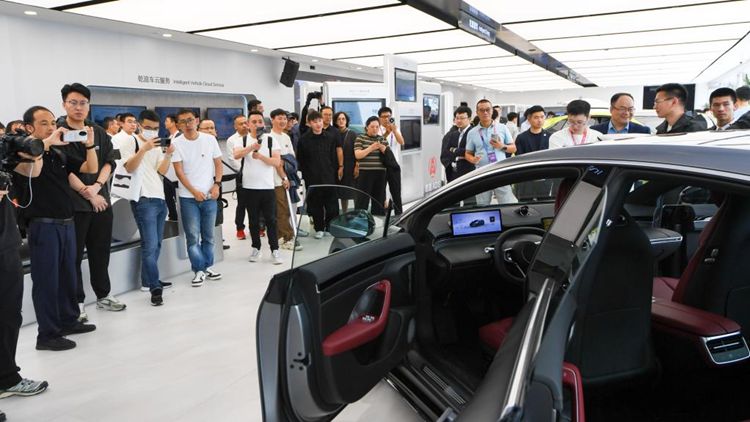 觀眾在北汽集團觀看“北極星”全數字化高端電動平臺。