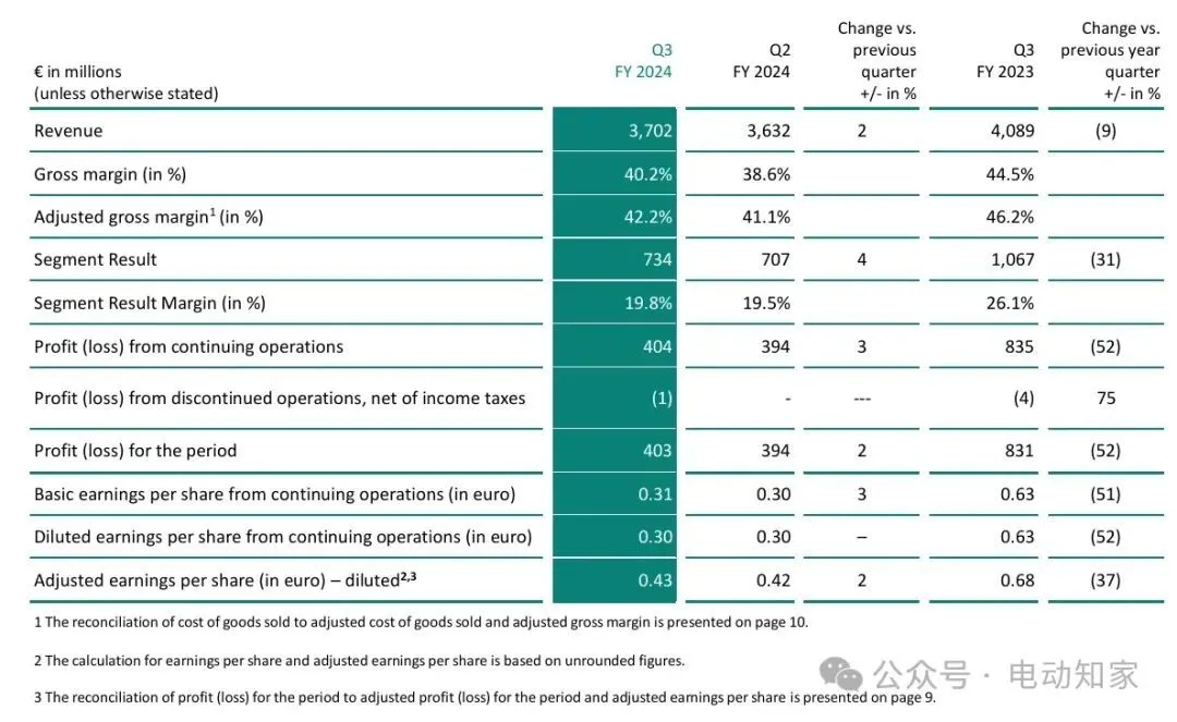當地時間本週一,德國晶片製造商英飛淩公佈了2024財年第三財季(2024年4~6 月)業績,營收同比減少9%,淨利潤更是同比暴跌52%,利潤率為19.5%,相比於去年同期的26.1%,降低了6.6%。英飛淩最新報告縮窄了2024預期範圍,此前該公司在電動汽車等市場復蘇停滯的情況下,第三財季收入未達預期。